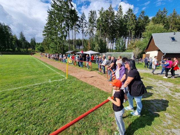 Die Thalheimer brachten anlässlich unseres Festes einen tollen und leckeren Kuchen mit. Vielen Dank nochmal dafür! Sportlich lief es für die Gastmannschaft besser. Bereits in der 5. Minute netzte der Thalheimer Paul Gräbner ein. In der 32. Minute verwandelte David Koch einen Elfmeter zum 0:2. Noch vor der Pause schoss Andy Haase das 0:3. Leider ging es nach der Halbzeitpause mit einem Doppelschlag der Gäste weiter (52 Minute Andy Haase; 53. Minute David Koch). Es folge in de 73. Minute sogar das 0:6 durch Paul Gräbner. Erst in der Schlussphase der Partie (78. Minute) konnte Johann Weisbach den Anschlusstreffer erzielen. Wenig später in der 82. Minute schoss Joey Lindner das Tor zum Endstand 2:6. Trotz der Niederlage war es ein tolles Fußballspiel für die zahlreichen Gäste.
