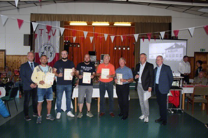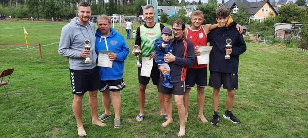 Die Brünloser Mannschaft mit Axel Roscher (3.v.l.) und Robin Auerswald (4.v.l.)setze sich gegen zwei Dorfchemnitzer Mannschaften durch.
